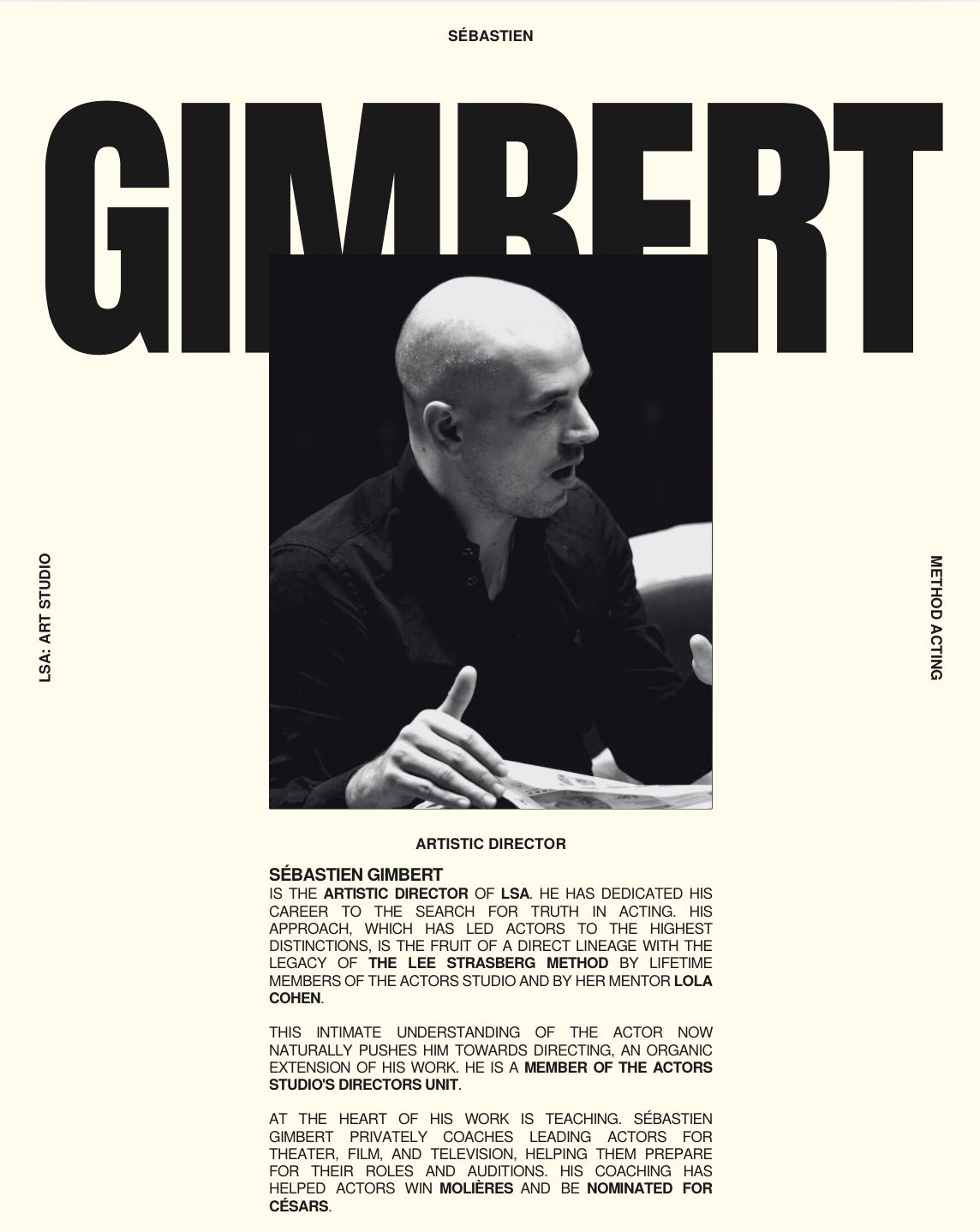 Notre vision s'inspire d'un héritage centenaire. Pour garantir l'excellence de son Théâtre d'Art de Moscou, Stanislavski a créé une École et des Studios, un écosystème où la formation nourrissait la création. Cette tradition, portée en Amérique par le Group Theatre puis sanctuarisée par l'Actors Studio, est celle que nous faisons revivre à Paris. Notre saison s'articule autour de cette dualité fondatrice : L'Académie (LAPA) pour former les futurs membres de notre Studio, et Le Studio d'Art (LSA) maison pour l'artiste qui veut chercher, se nourrir artistiquement, créer.