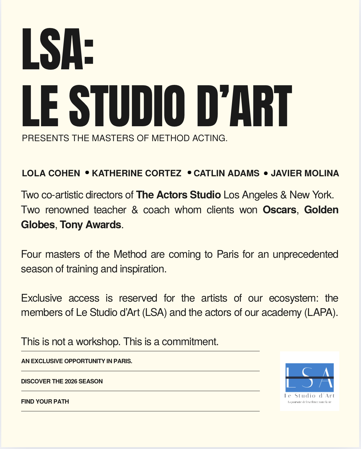 Gage d'excellence et d'authenticité, nos formations LAPA sont les seules en France à nouer un partenariat pérenne avec le Lee Strasberg Theater and Film Institute, berceau de la célèbre "Méthode" ou "Method Acting".